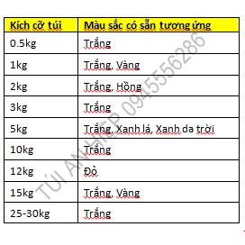 Túi bóng các loại, 0.5kg - 30kg, đẹp không mùi.QUÝ KHÁCH VUI LÒNG NHẮN TIN MÀU SẮC CHO LOẠI TÚI MUỐN MUA.
