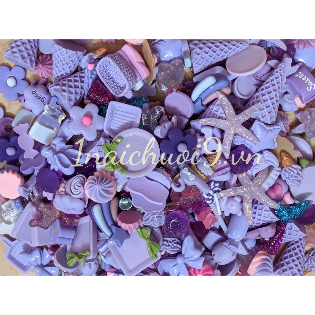 Túi charm 30 mô hình các loại màu tím cho các bạn trang trí Jibbitz, điện thoại, DIY