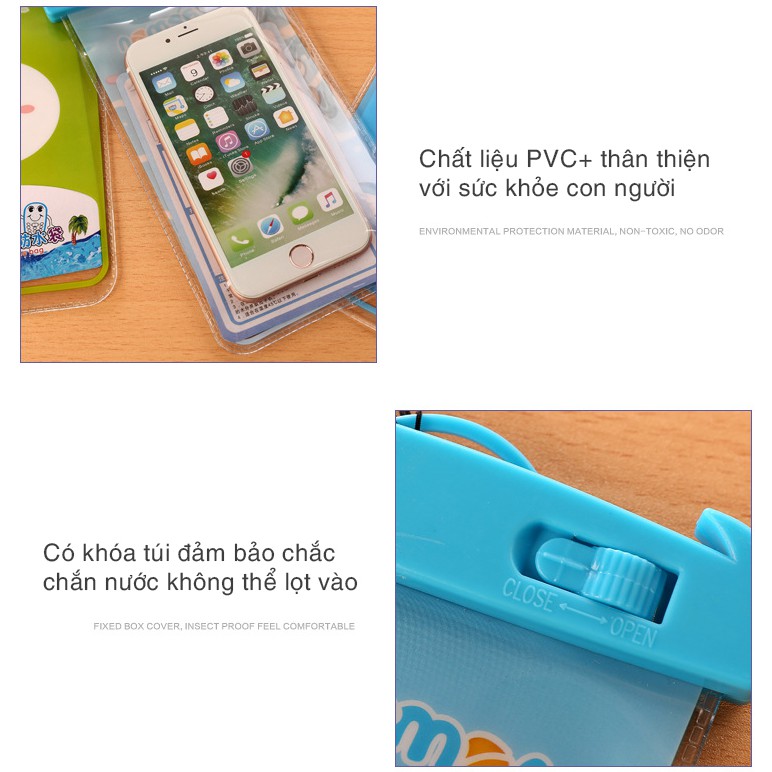 Túi chống nước điện thoại có khóa 2018Chất liệu: PVC+ mới nhất 2018 siêu đàn hồi và độ trong suốt cao, không ảnh hưởng tới chất lượng ảnh chụp qua tối