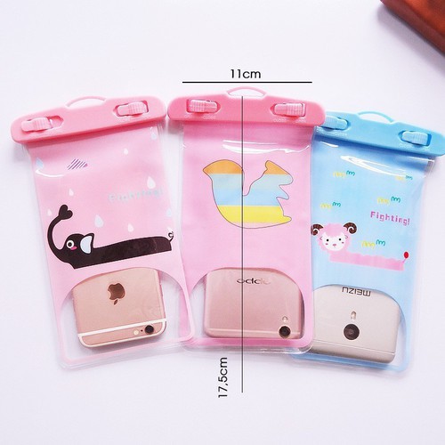 - Túi chống nước điện thoại họa tiết hoạt hình giúp bảo vệ thiết bị của bạn an toàn khi lỡ tiếp xúc với nước hoặc những lúc trời mưa.- Sản phẩm được làm từ nhựa dẻo có khả năng chống thấm nước cực tốt, cho thời gian sử dụng lâu dài.