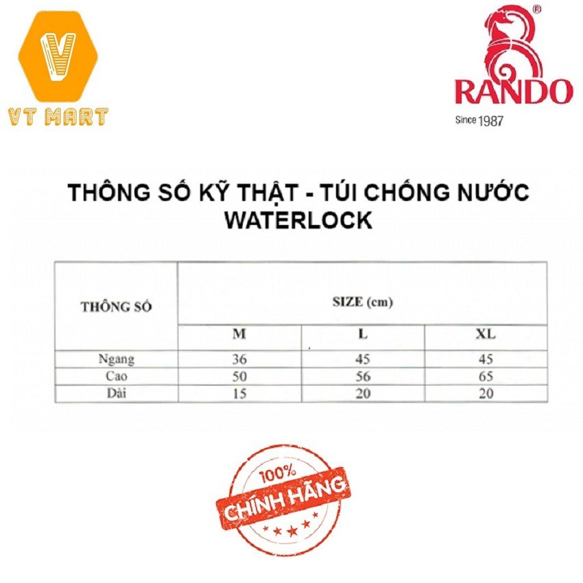 Túi chống nước Rando WaterLock Giúp vật dụng của bạn luôn được an toàn khi đi đường vào mùa mưa bão.