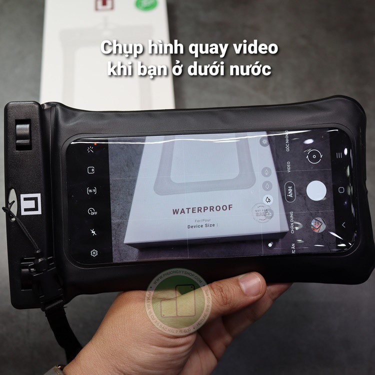 👉 Đặc biệt khi máy đã gắn case UAG dày vẫn có thể để vừa túi chống nước này.