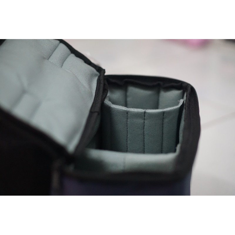 sức chứa của túi : 1 body + 2lens và phụ kiện.