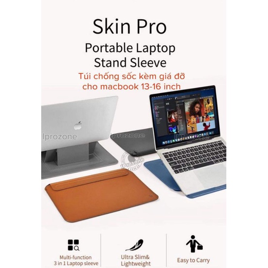 Máy tính & Laptop > Phụ Kiện Máy Tính > Miếng Dán & Ốp Laptop || Túi chống sốc kèm giá đỡ cho Macbook 13 - 16 inch mỏng , gọn , nhẹ chính hãng WiwuCòn hàng
