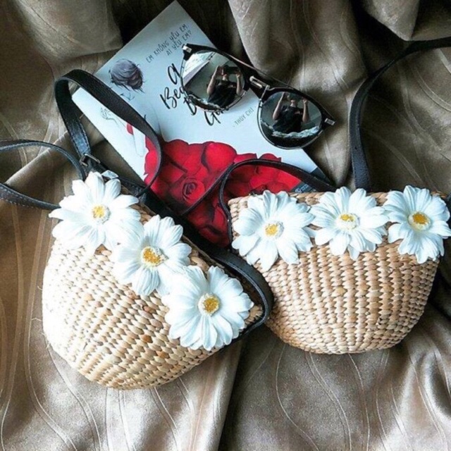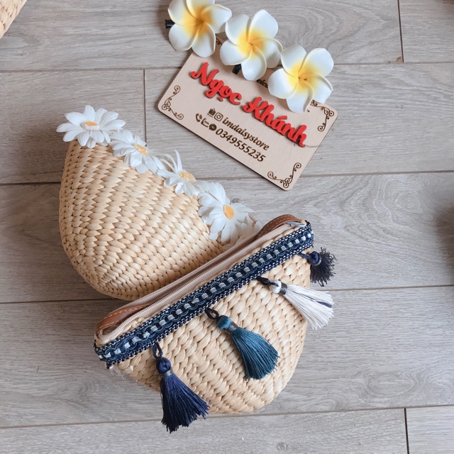 Túi cói lục bình tam giác nhỏ xinhTúi dạng phồng, có lót vải thô mát. Có khoá kéo nha ^^