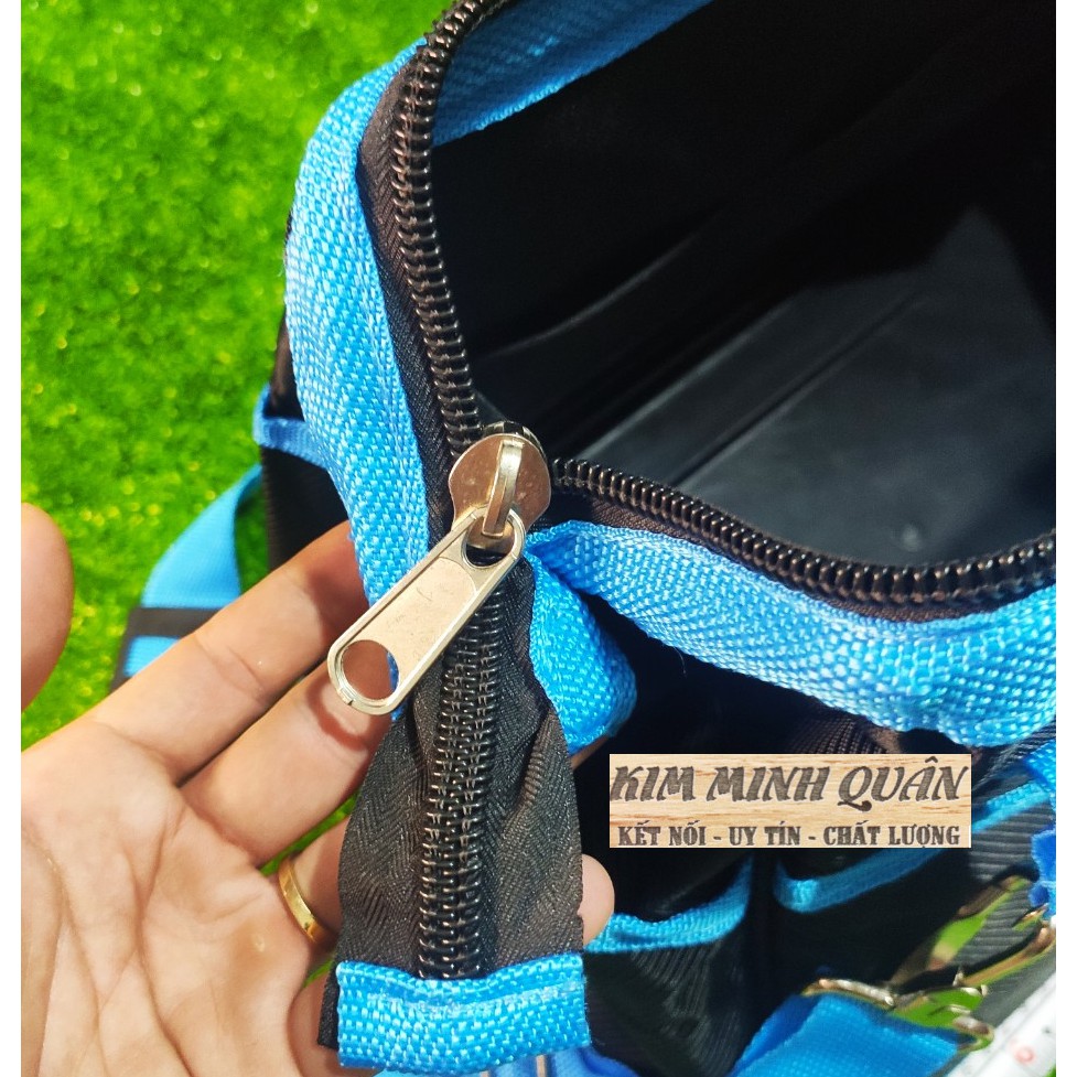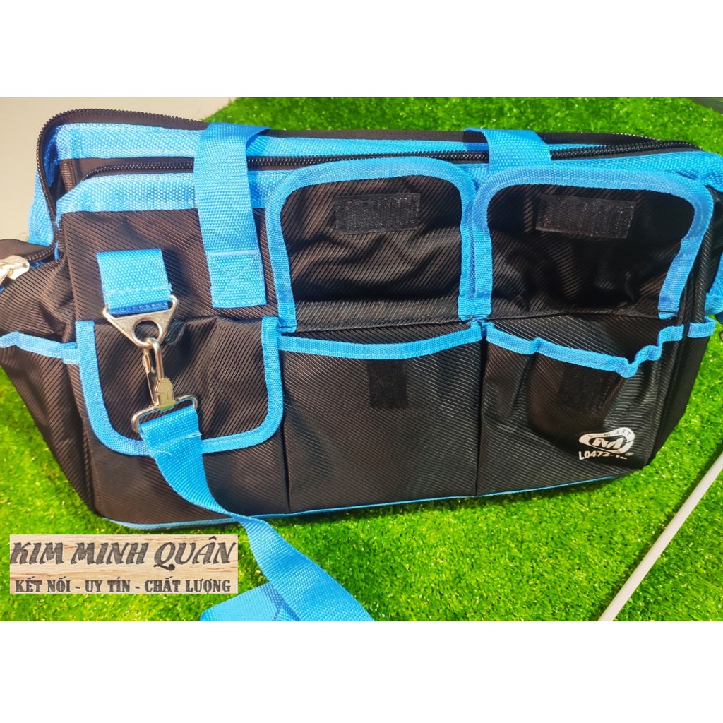 Túi bên ngoài thiết kế 6 túi nhỏ , 3 túi có thiết kế miệng chống rơi dụng cụ , bên trong có 6 túi nhỏ