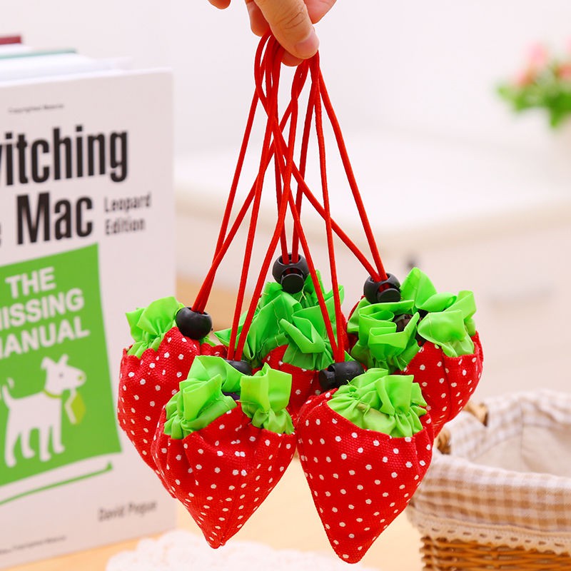 HÃY DÙNG TÚI DÂU TÂY ĐỂ BẢO VỆ MÔI TRƯỜNG BẠN NHÉ!Túi dâu tây đựng đồ gấp gọn, gấp lại thành hình trái dâu tây rất dễ thương