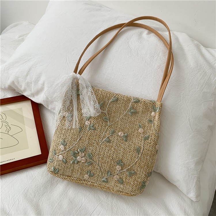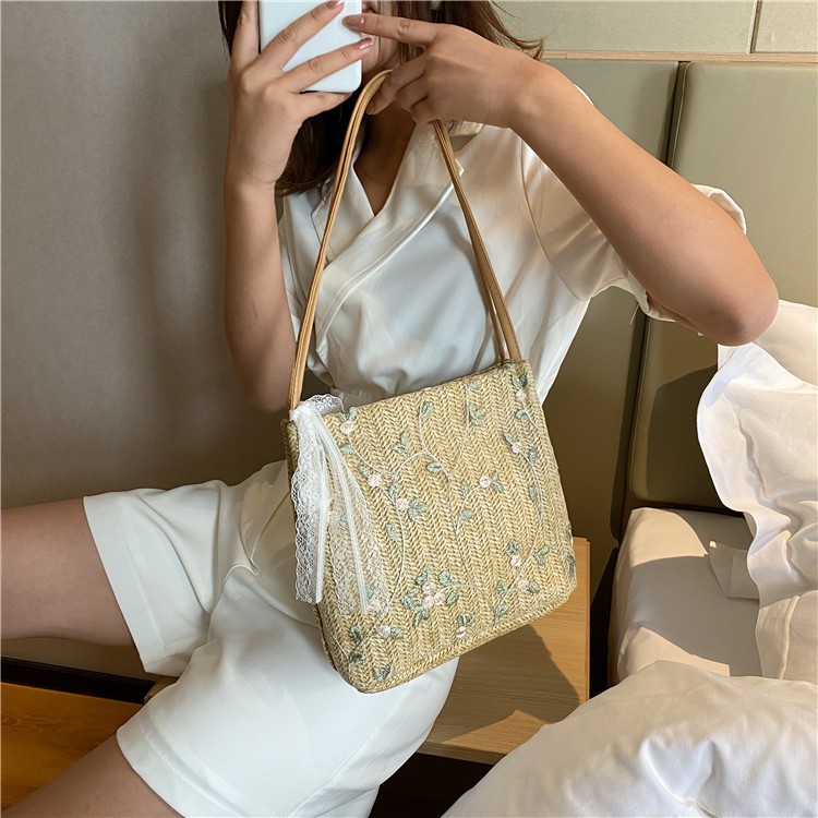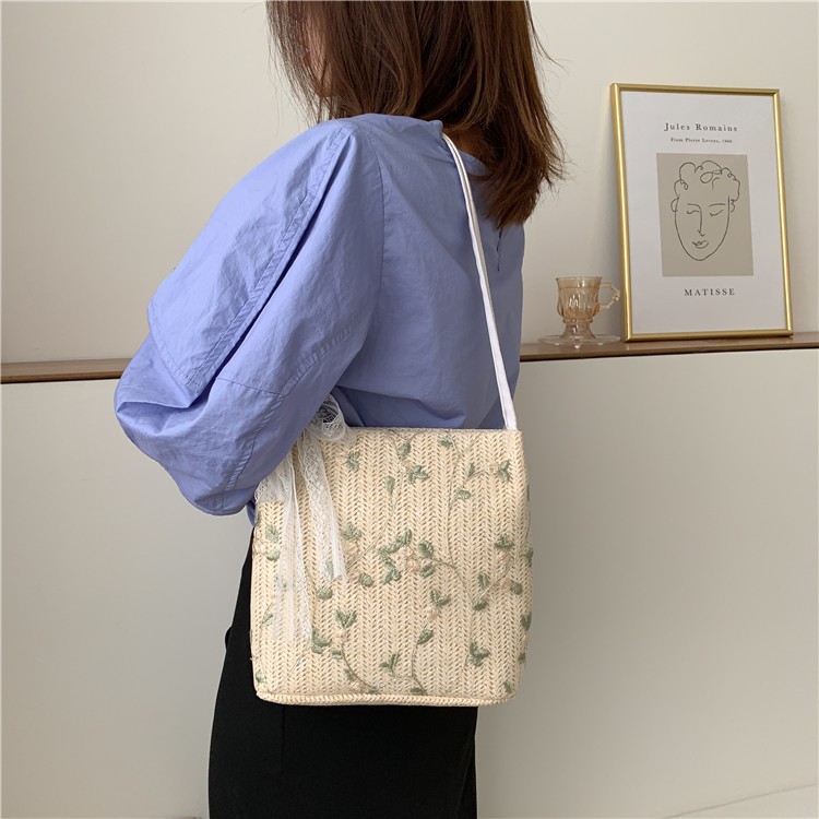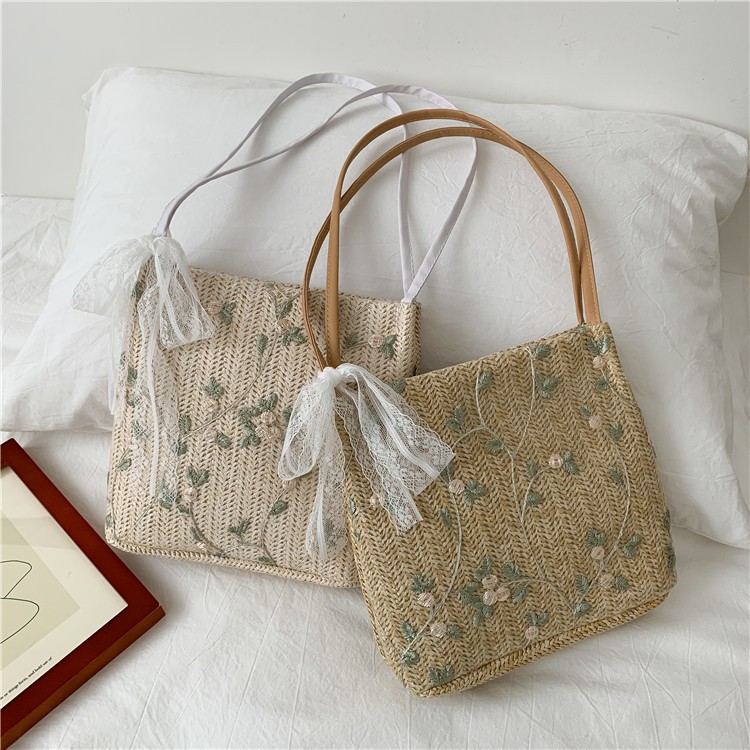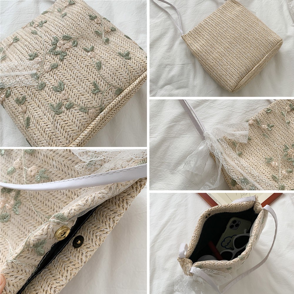 Giới thiệu Túi Đeo Chéo Chất Cói Xô Đi Biển Thêu Cây Hoa Style Korea Mới Xinh