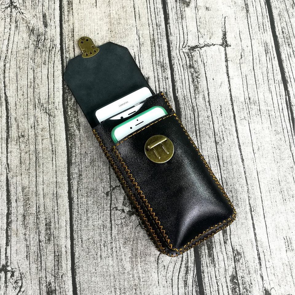 Túi đeo thắt lưng đựng điện thoại da bò cao cấp– Túi nhỏ phía trước được làm rộng hơn có thể đựng được IP6, IP7, IP8.