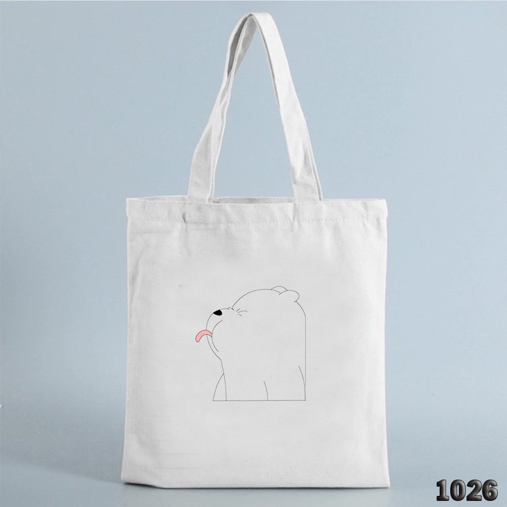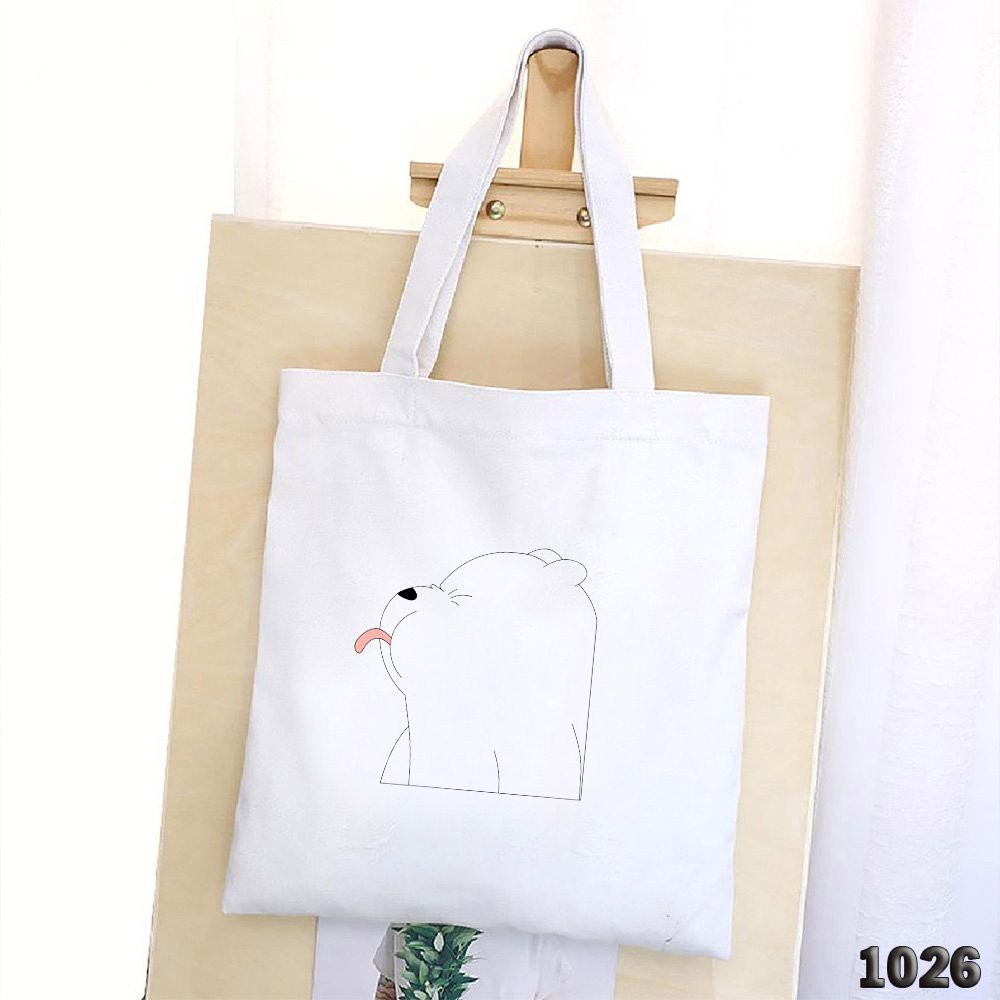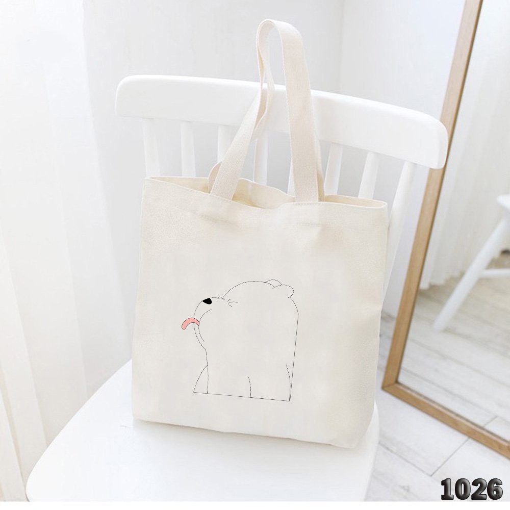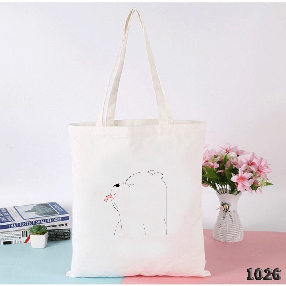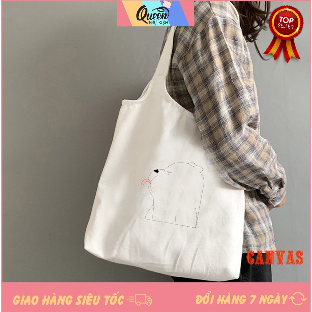 Túi Đeo Vai Vải Canvas Trắng Giá Rẻ Có Khóa Miệng 503 1026 Bear Lè Lưỡi Dễ Thương Hàng May Công Ty Chuẩn Đẹp