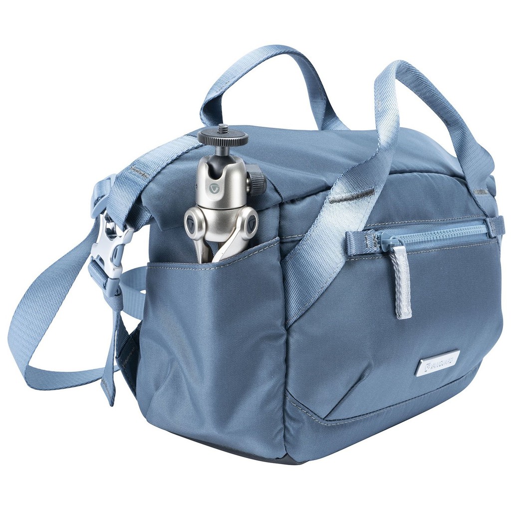 Khoang túi zip trước có thể dùng để chứa thẻ nhớ, nắp ống kính và phụ kiện cá nhân. VEO FLEX 25M đi kèm một túi trùm chống thấm và dây đeo lót đệm. Túi có 2 phiên bản màu là Black (đen) và Blue (xanh).