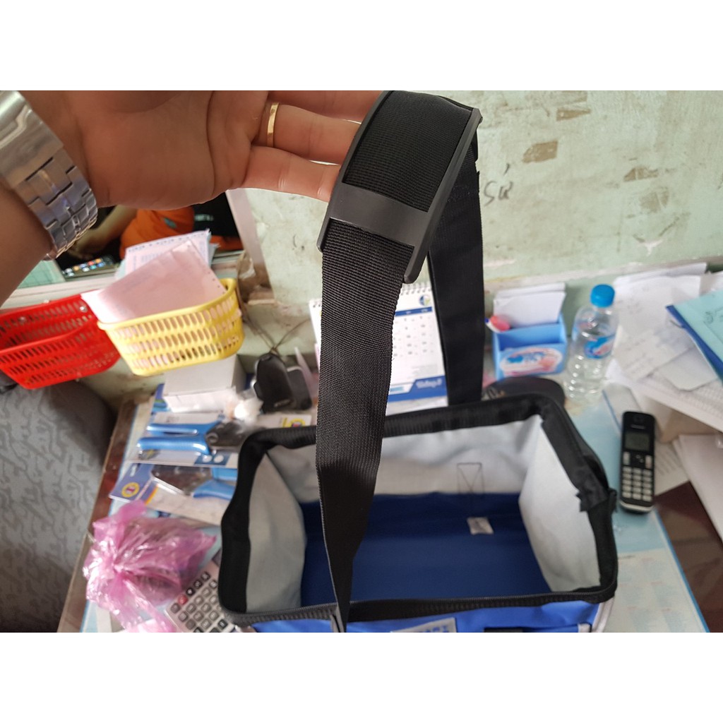 Dạng túi đựng dụng cụ sửa chữa lớn được làm từ vải dù siêu bền với 1 ngăn lớn để đựng dây đai an toàn, khoan, máy bắn vít, bộ loe, còn lại là các ngăn nhỏ đựng đồng hồ, tuốc nơ vít, cờ lê, kìm, băng dính… Túi đựng dạng lớn hỗ trợ vô cùng hiệu quả với dây đeo quai một bên, đệm lót bên hông giúp chống đau, tì, giảm lực tác dụng trong quá trình sử dụng. Ngoài ra, các loại túi đựng cao cấp còn hỗ trợ tránh tình trạng bị đau một bên hông gây nên tình trạng lệch hông, sơ cứng xương hông – đây là bệnh thường gặp ở các công nhân thường xuyên làm việc trên cao.