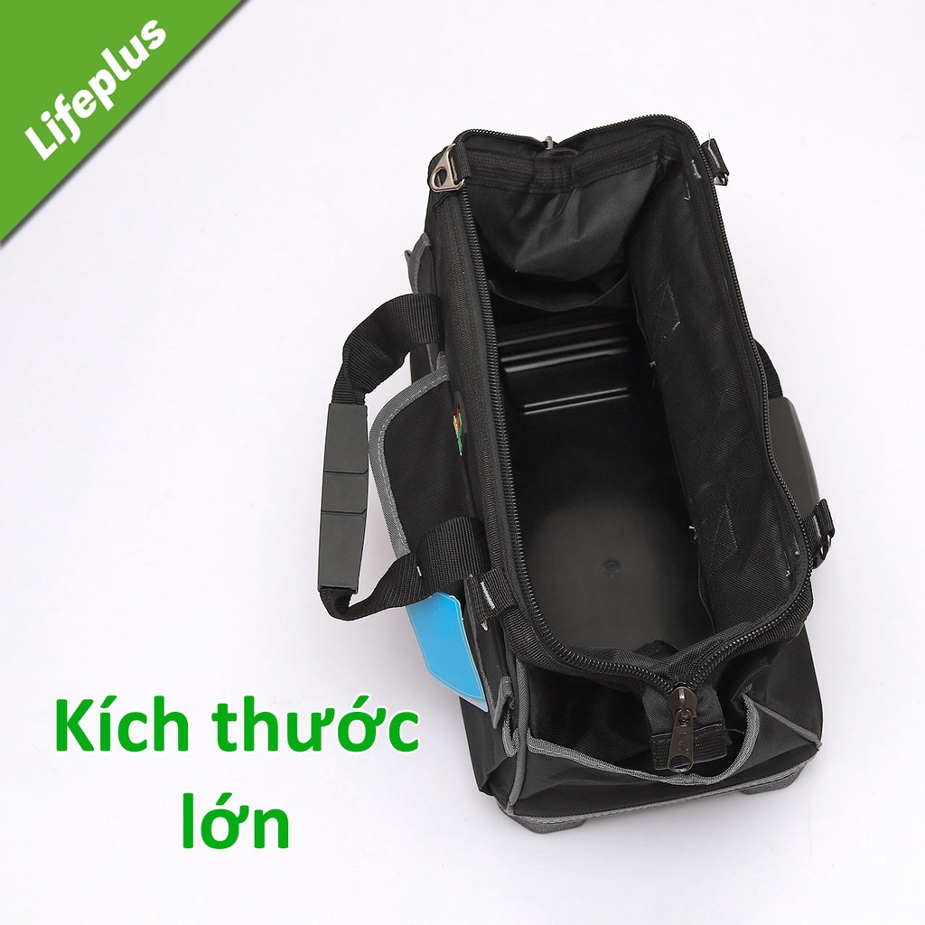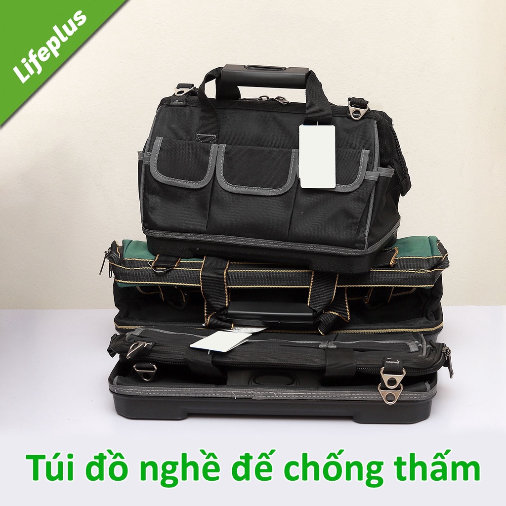 Với túi đồ nghề đế nhựa dẻo , người dùng có thể thoải mái đựng cất các loại dụng cụ khác nhau, rất thuận tiện trong quá trình thao tác, sử dụng đồ nghề mà còn hạn chế được việc mất mát, thất lạc đồ đạc, dụng cụ.Kích thước: