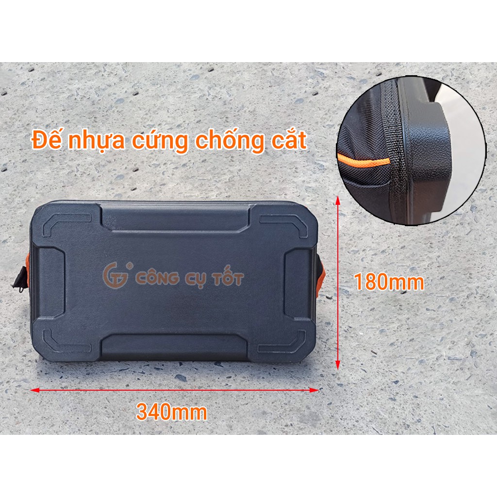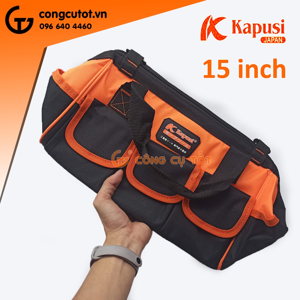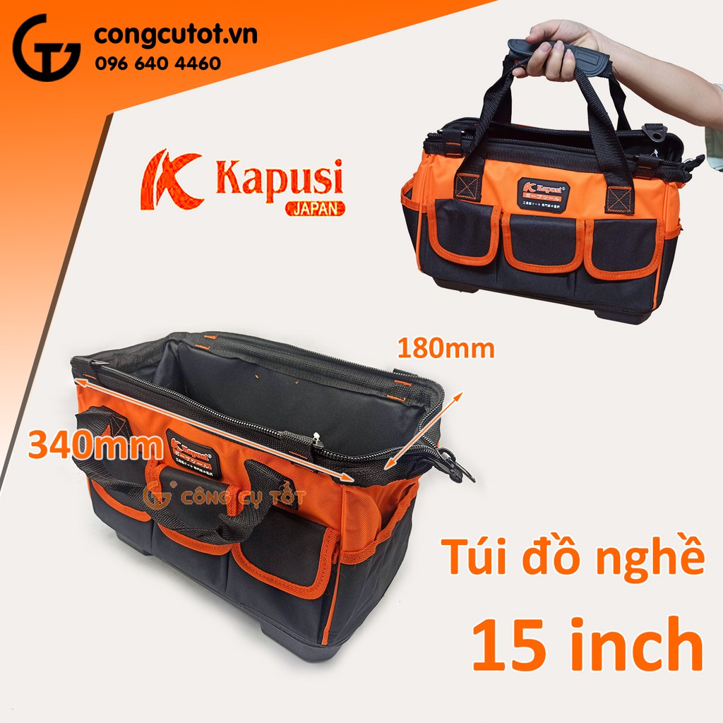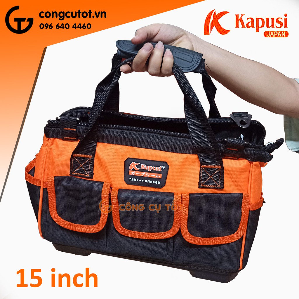 Túi đồ nghề Kapusi 15 inch kèm 8 túi phụ bằng vải dù đáy nhựa cứng Nhật Bản