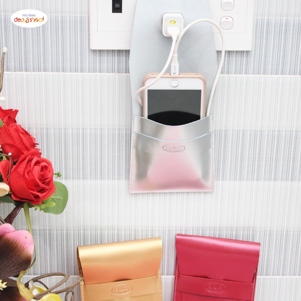 Điện Thoại & Phụ Kiện > Phụ kiện > Túi đựng điện thoại || Túi Đỡ sạc điện thoạ da bò thật Để remote -treo sạc điện thoại tiện lợi giúp không gian gọn gàngCòn hàng