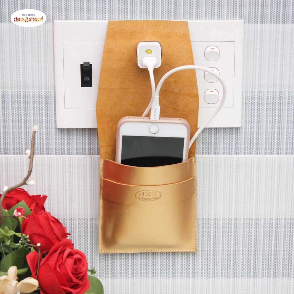 Túi Đỡ sạc điện thoạ da bò thật Để remote -treo sạc điện thoại tiện lợi giúp không gian gọn gàngTúi đựng điện thoại -Đỡ sạc điện thoại Để remote -treo sạc điện thoại tiện lợi giúp không gian gọn gàng