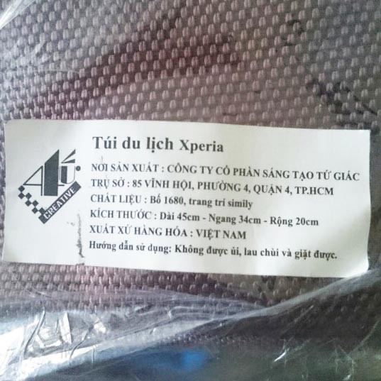 Giới thiệu Túi du lịch vải bố Sony Xperia kích thước 45 x 35 x 20 cm sản xuất tại Việt Nam