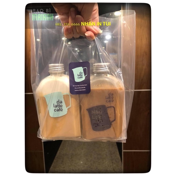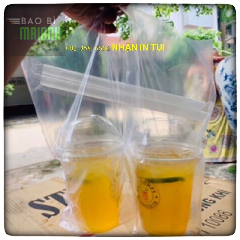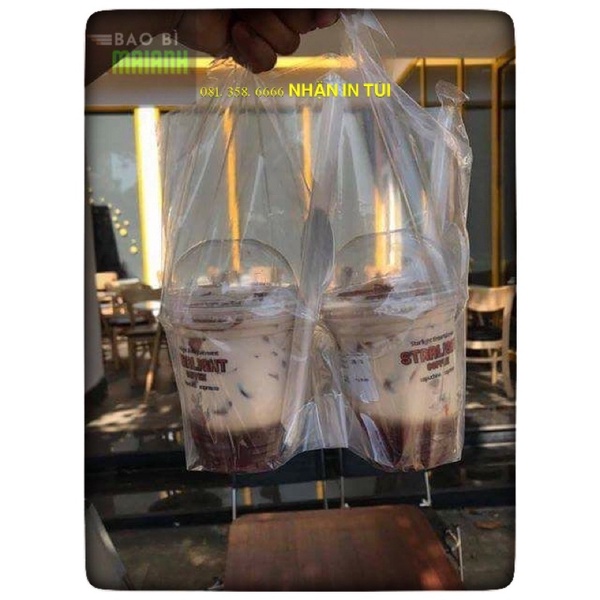 Túi đựng ly trà sữa, cà phê .Túi đựng 2 cốc nắp cầu có rãnh ngăn, túi trong suốt