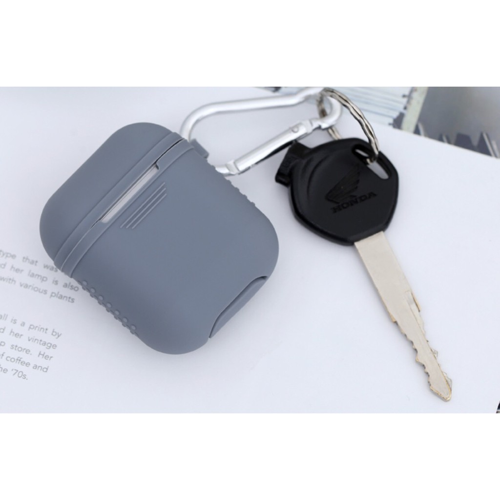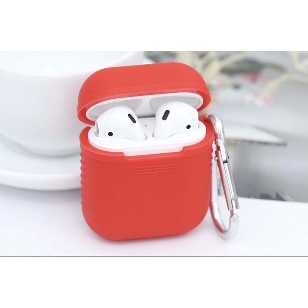 Túi đựng AirPods 1 & 2 silicone kèm móc JM PDC013 Xám - Đỏ