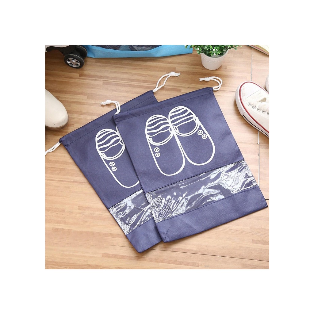 Túi Đựng Bảo Quản Giày Dép Có Dây Rút, Chất Liệu Vải Không Dệt, Có Lớp Nhựa Trong Suốt Tiện Lợi