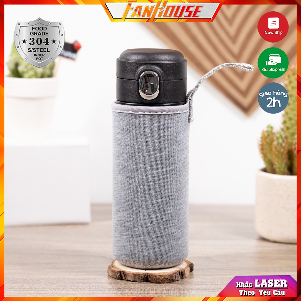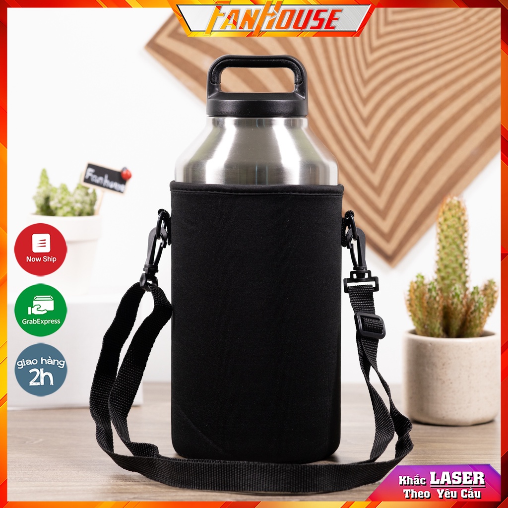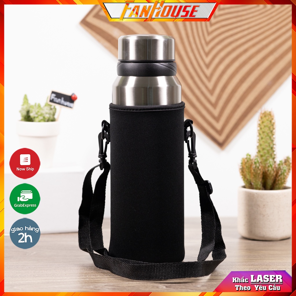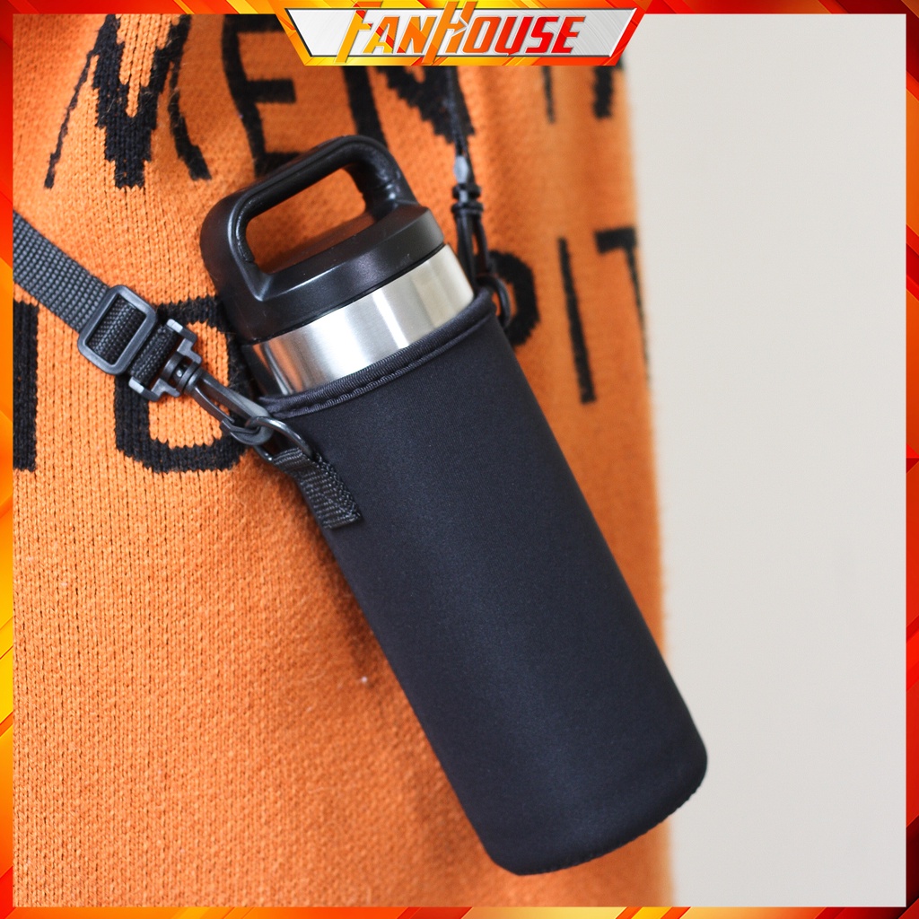 Túi đựng bình giữ nhiệt Fan House, bao bảo vệ bình nước vải co giãn tuỳ chỉnh kích thước dây đeo