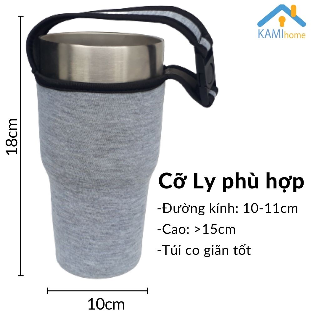 Giới thiệu Túi đựng bình ly giữ nhiệt cỡ Lớn vải co giãn có quai xách 10x18cm (Chọn màu) Kami22035