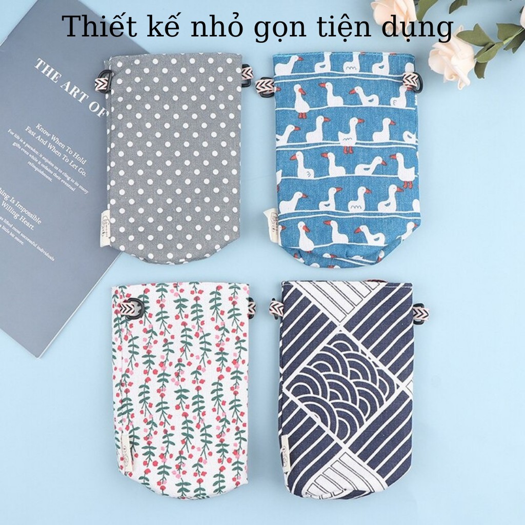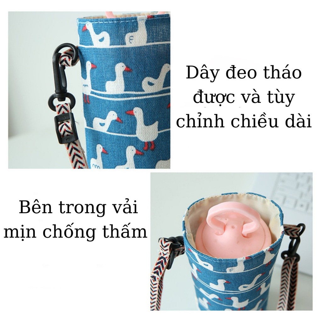 Túi Đựng Bình Nước, Bình Giữ Nhiệt, Giỏ Đựng Bình Nước:- Túi được làm bằng 2 lớp vải: lớp bên ngoài bằng Chất Liệu Vải Lanh Cotton, bên trong có 1 lớp vải chống thấm