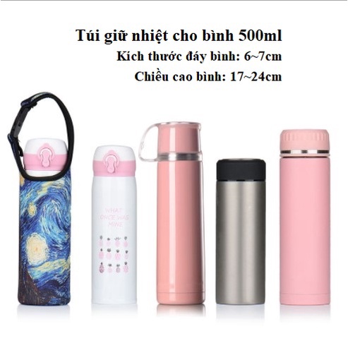 Túi đựng bình nước, túi đựng bình giữ nhiệt 500ml vải chống thấm, chống va đập có quai đeo + Mua kèm dây nối dài