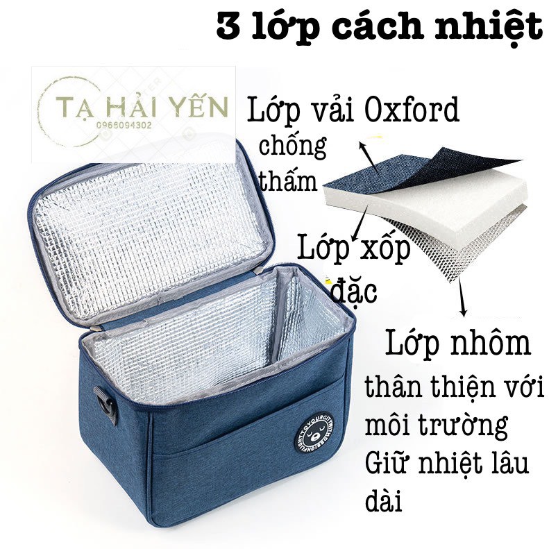 ✅Túi có 3 lớp; lớp ngoài là vải Oxford 600D chống thấm, lớp giữa là xốp đặc siêu nhẹ dày ~ 4mm, lớp trong cùng là màng nhôm rất giầy giữ nhiệt nóng / lạnh hiệu quả