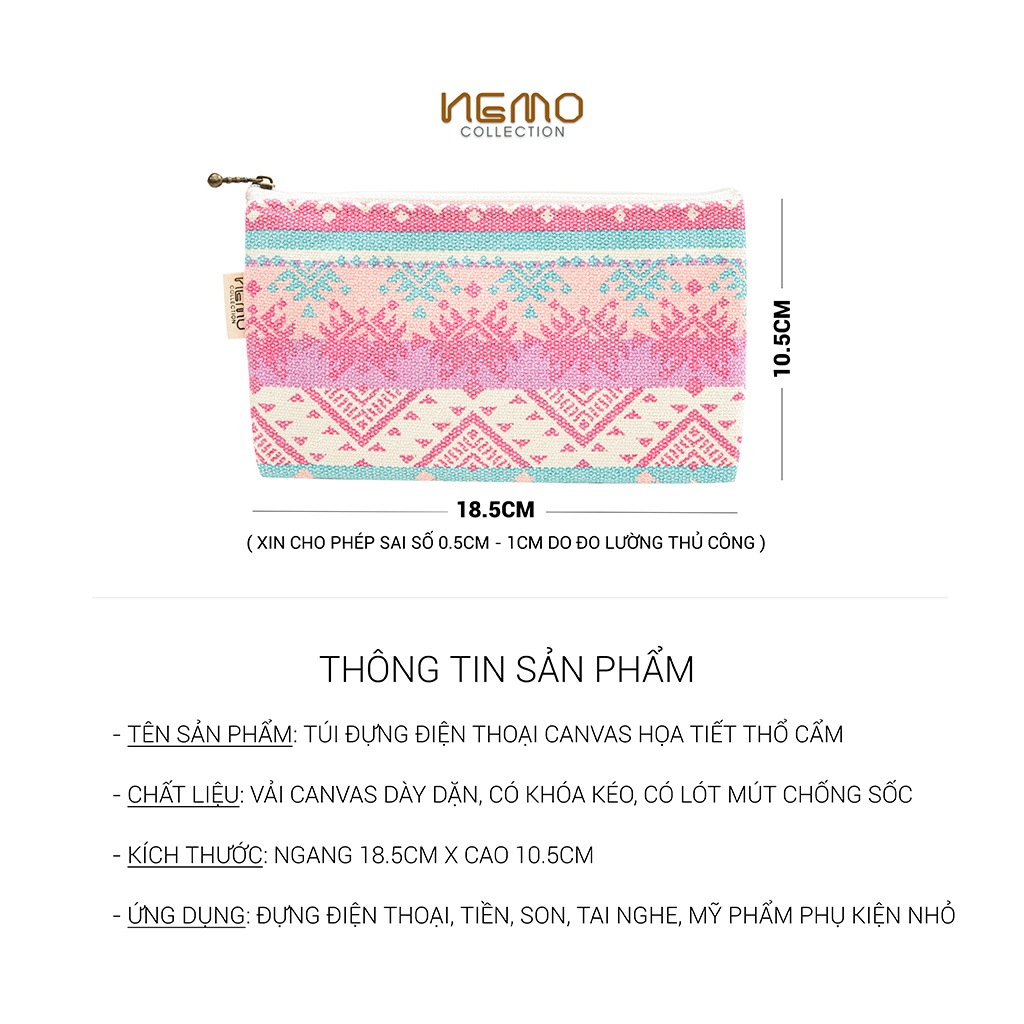 Giới thiệu Túi Đựng Điện Thoại Canvas Họa Tiết Thổ Cẩm Có Lót Mút Chống Sốc - Nemo Collection TSAD
