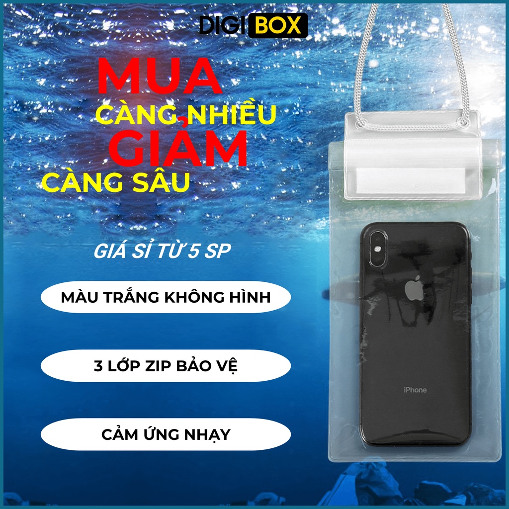 Túi đựng điện thoại chống nước cảm ứng trong suốt đi biển,cho xe máy, trắng trong không hình