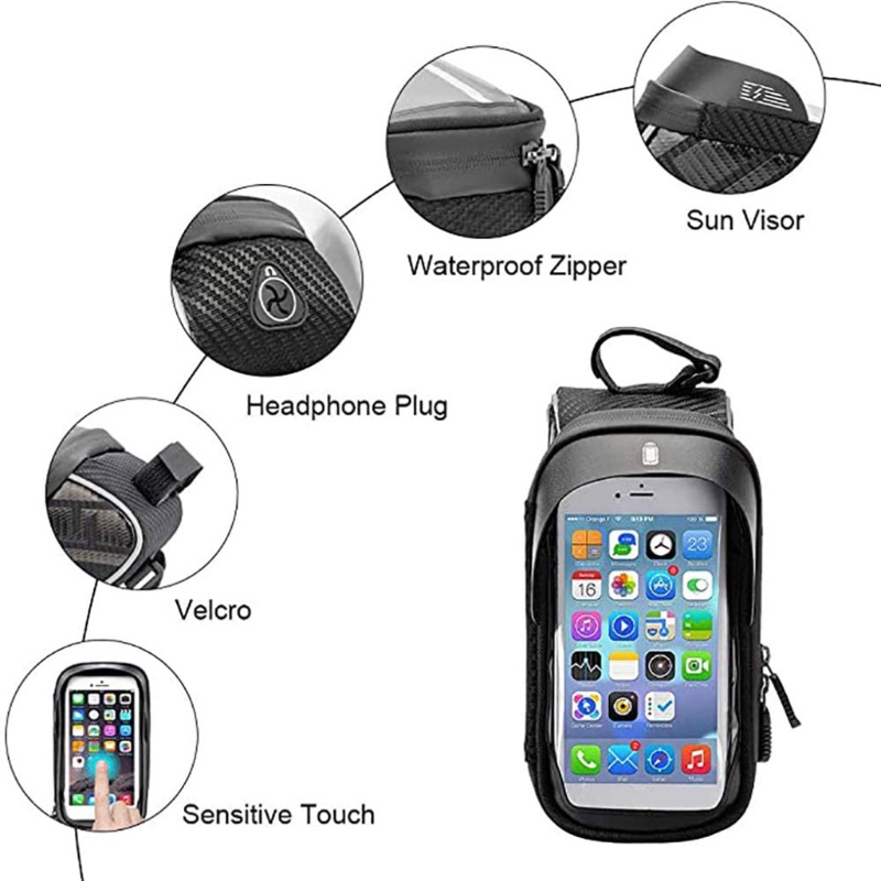 LARGE SPACE: The bike bag offers enough storage space. The can be attached to a suitable position and has a headphone jack (listening to music, charging, making calls). It offers space for mobile phones, car lights, chargers, keys, credit cards and other driving tools.