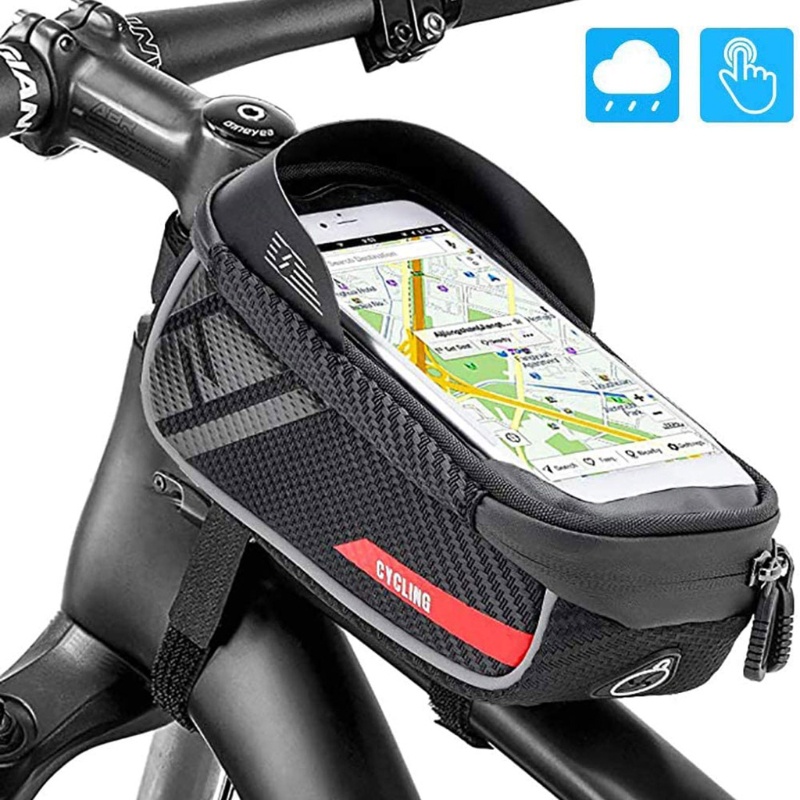 Bicycle Front Frame Storage Bag with TPU Touchscreen MTB Bike Cycling Riding Waterproof Sun Visor Top Tube Phone Mount100% brand new and high quality