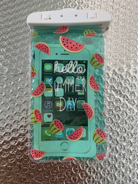 - Túi được làm từ chất liệu nhựa dẻo trong suốt, có tính năng cảm ứng nhiệt, giúp người dùng có thể sử dụng điện thoại để nghe, nhận cuộc gọi cũng như chụp ảnh dưới nước.
