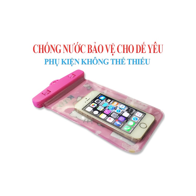 Túi đựng điện thoại chống nước có thiết kế khóa gài kín đáo, ngăn bụi bẩn, trầy xước do va chạm và đặc biệt chống thấm tốt, an toàn ngay cả trong môi trường nước.- Túi được làm từ chất liệu nhựa dẻo trong suốt, có tính năng cảm ứng nhiệt, giúp người dùng có thể sử dụng điện thoại để nghe, nhận cuộc gọi cũng như chụp ảnh dưới nước.
