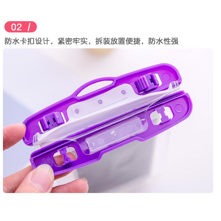 - Túi đựng điện thoại chống nước có thiết kế khóa gài kín đáo, ngăn bụi bẩn, trầy xước do va chạm và đặc biệt chống thấm tốt, an toàn ngay cả trong môi trường nước.