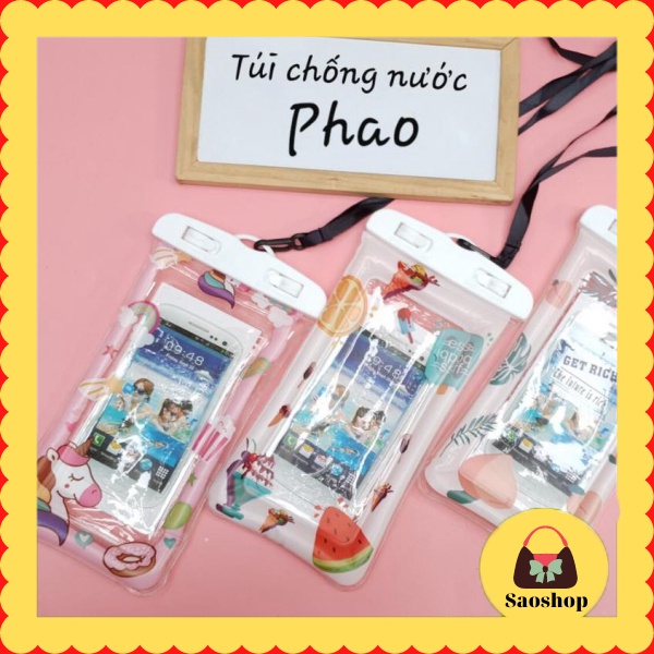 - Túi chống nước in hình có phao nổi dùng cho điện thoại có kích thước đến 5.5 inch, bạn có thể thoải mái chụp hình, quay phim khi đi bơi để sở hữu những khung hình đẹp, độc và lạ ở dưới nước mà không lo hư hỏng chiếc điện thoại của mình.