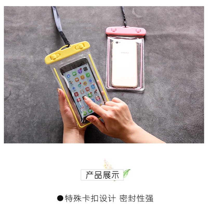 🔹 Mô tả: Túi đựng điện thoại chống nước có thể sử dụng màn hình cảm ứng. Đi du lịch hay đi bơi đều rất tiện các bạn nha. Chất liệu nhựa trong suốt giúp bạn có những bức ảnh đẹp mà ko lo điện thoại bị dính nước 😍