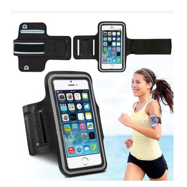 Bao (túi) đeo tay để điện thoại khi tập thể dục với điện thoại từ 5,5" trở xuống-Túi thiết kế có lỗ để dễ dàng truy cập vào cổng cắm headphone và các phím điều khiển.