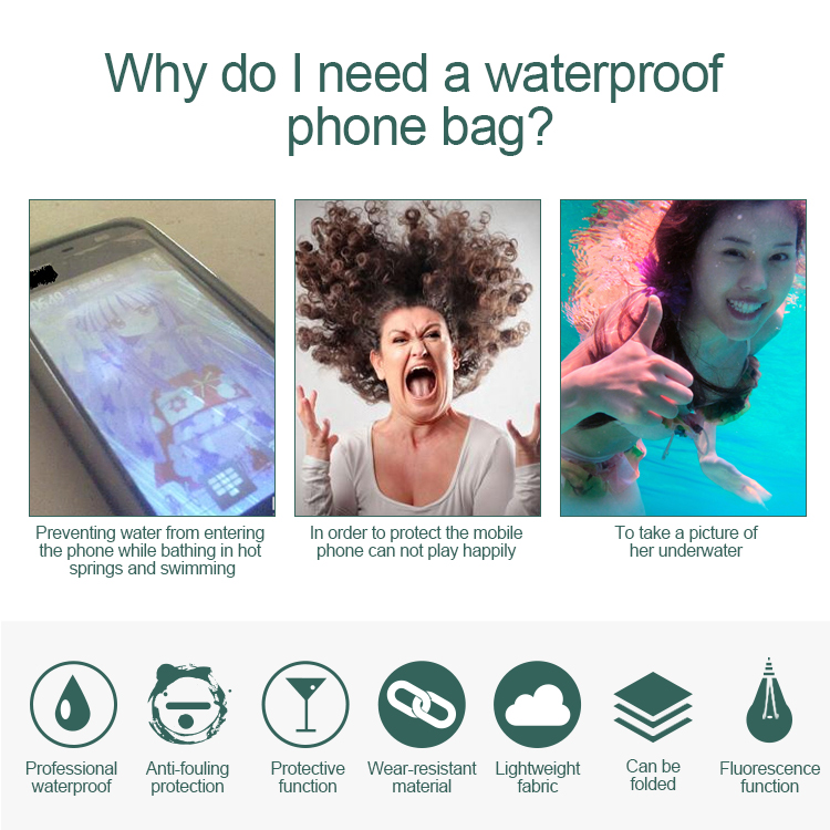 Thông tin chi tiết:Tên: Túi chống nước điện thoại di động túi chống thấm nước huỳnh quang