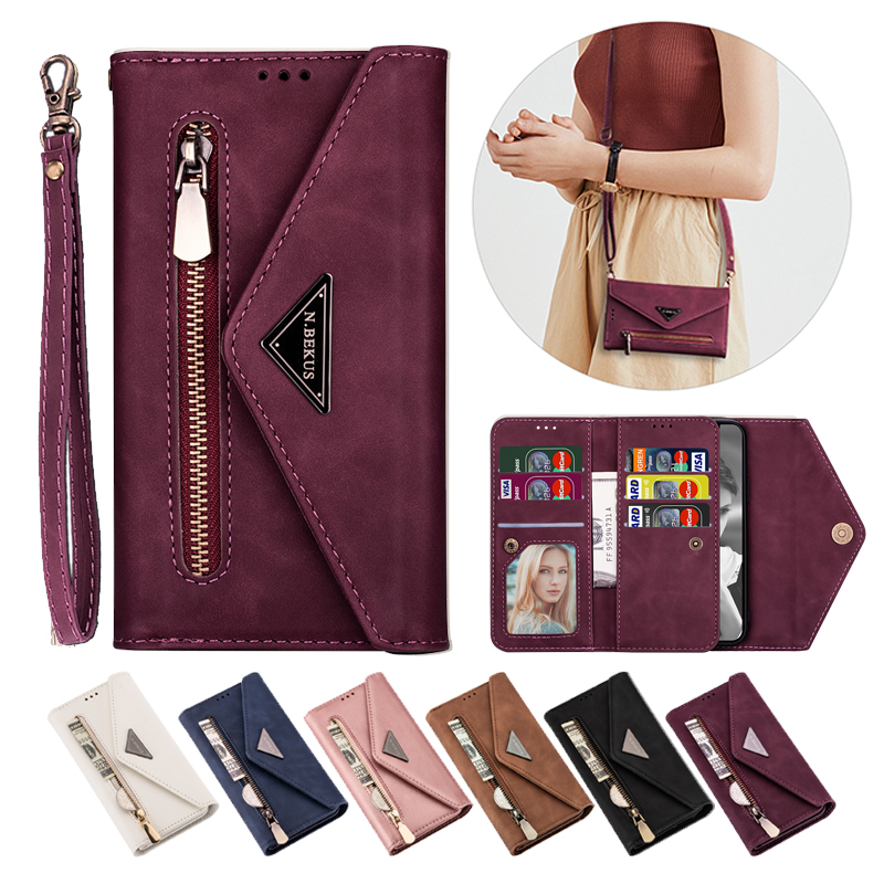 Giới thiệu Túi đựng điện thoại mềm bằng da có dây kéo ngăn đựng thẻ cho Samsung Note 20 10 Lite/A81 Pro/plus 10+ Note 9 8