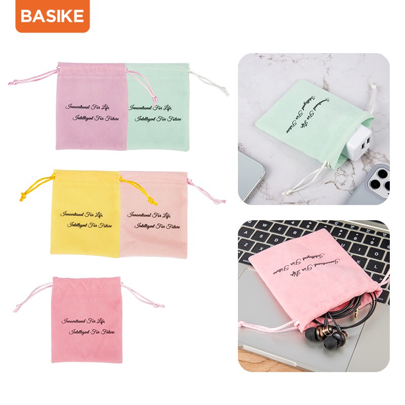 Túi đựng đồ BASIKE bằng vải nỉ tiện dụng để bảo quản sạc dự phòng/ tai nghe/ cốc sạc