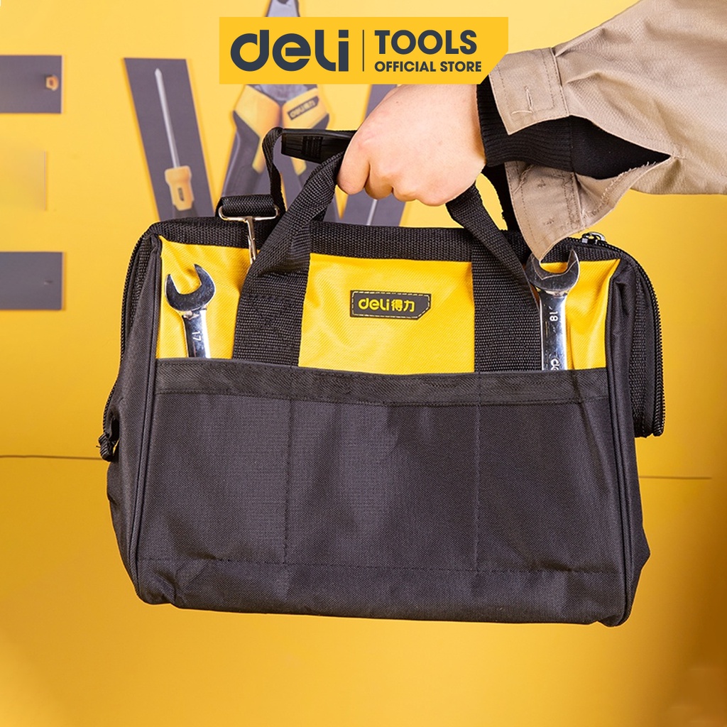 Nhà cửa & Đời sống > Dụng cụ & Thiết bị tiện ích > Dụng cụ > Hộp dụng cụ cầm tay || Túi Đựng Đồ Nghề 16 Inch Deli Cao Cấp Chính Hãng - Chất Liệu Chống Thấm Nước, Nhiều Ngăn Tiện Dụng - DL-P2Còn hàng