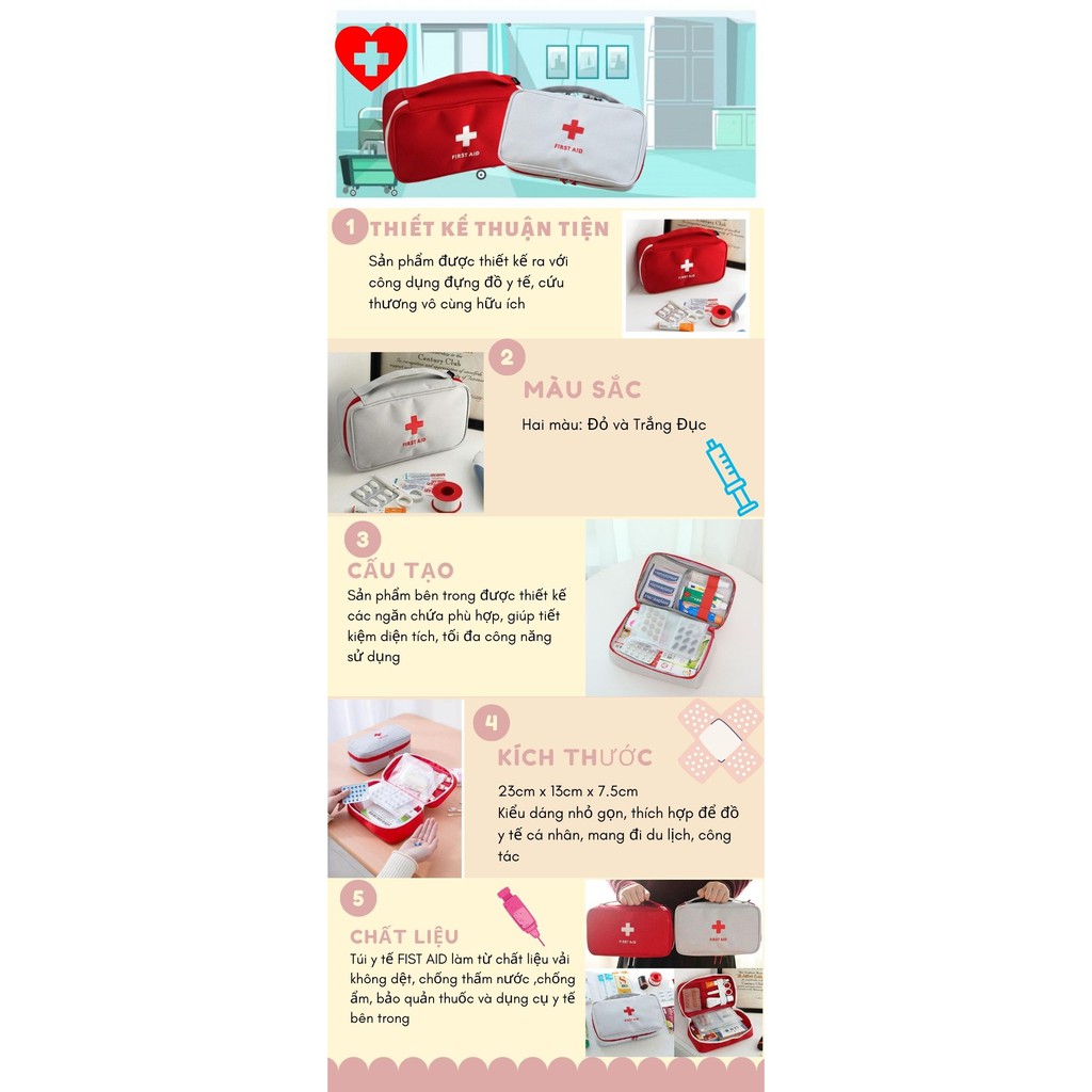 Giới thiệu Túi đựng đồ y tế sơ cứu nhiều ngăn tiện dụng, túi y tê mini đa năng TT- HOME