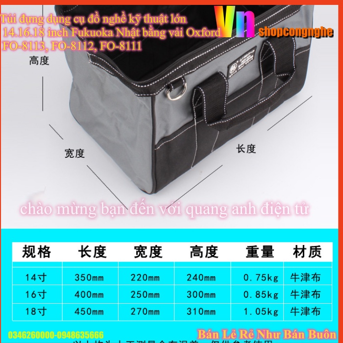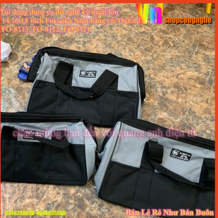 Giới thiệu Túi đựng dụng cụ đồ nghề kỹ thuật lớn 14.16.18 inch Fukuoka Nhật bằng vải Oxford FO-8113, FO-8112, FO-8111
