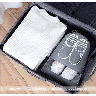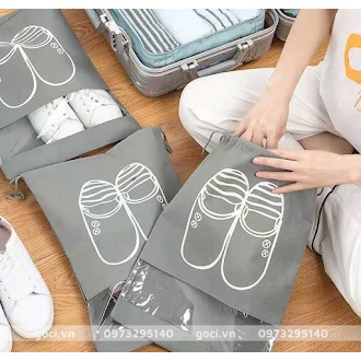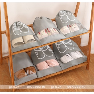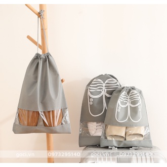 Túi đựng giày bằng vải không dệt có dây rút chống bụi chống ẩm mốc tiện lợiTúi đựng giày được làm từ chất liệu vải dù, bền đẹp. Thiết kế nhỏ gọn, vừa vặn với tất cả các loại giày dép,tiện dụng, dễ dàng mang theo đến bất cứ nơi đâu. Túi có dây rút bao quanh tạo độ mở rộng giúp người dùng cất và lấy giày một cách thuận tiện. Hoặc bảo quần giày dép vào tủ cho gọn, tránh bụi bẩn