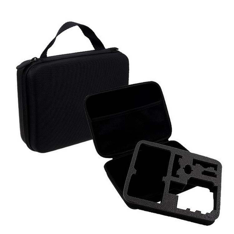 Hộp đựng GoPro và phụ kiện Action Cam được chia làm 2 phần. Phần nắp trên túi dạng lưới thường để những phụ kiện như gậy, dây đeo, keo 3m. Phần thân chính của hộp chống sốc GoPro có nhiều ngăn nhỏ. Các ngăn nhỏ được ngăn cách lớp mút đệm chống sốc, chống va đập vào nhau.