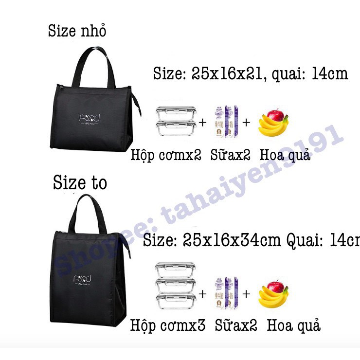 ✅Công năng: dùng để đựng thức ăn, giữ nhiệt hiệu quả, tiện lợi cho dân văn phòng, hoặc có thể dùng cho những chuyến đi picnic✅ Túi có 2 kích thước: size dọc: 25x16 x34 cm: túi rất rộng, có thể đựng chai nước 1 lít, 3 hộp cơm, hoa quả