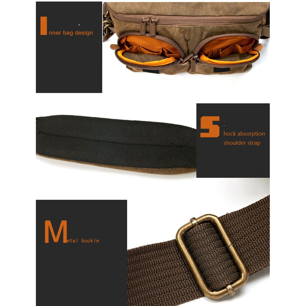 Túi máy ảnh canvas Benkid_1207.- Được làm từ chất liệu vải canvas, có độ bền cao, chống thấm nước , chống mài mòn.