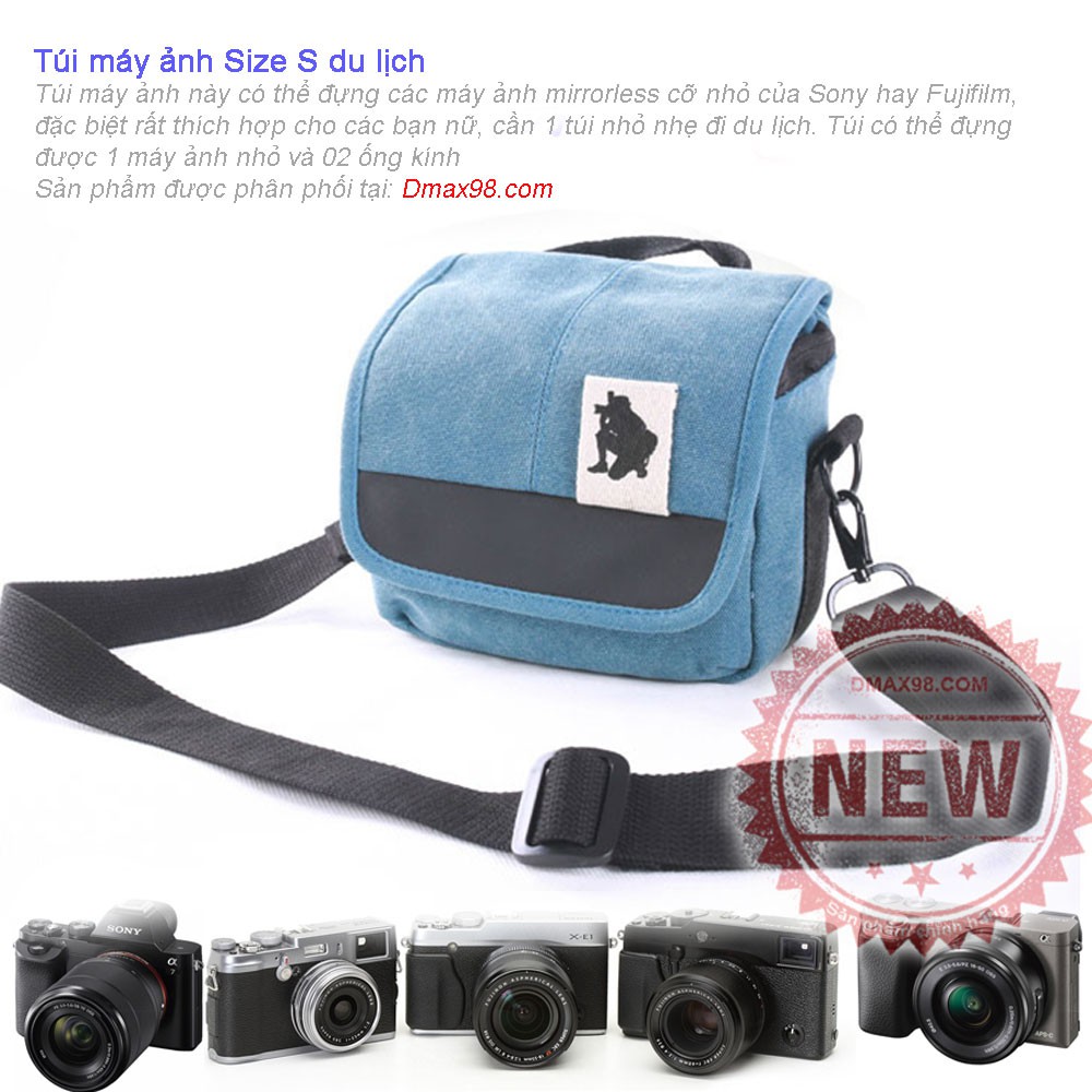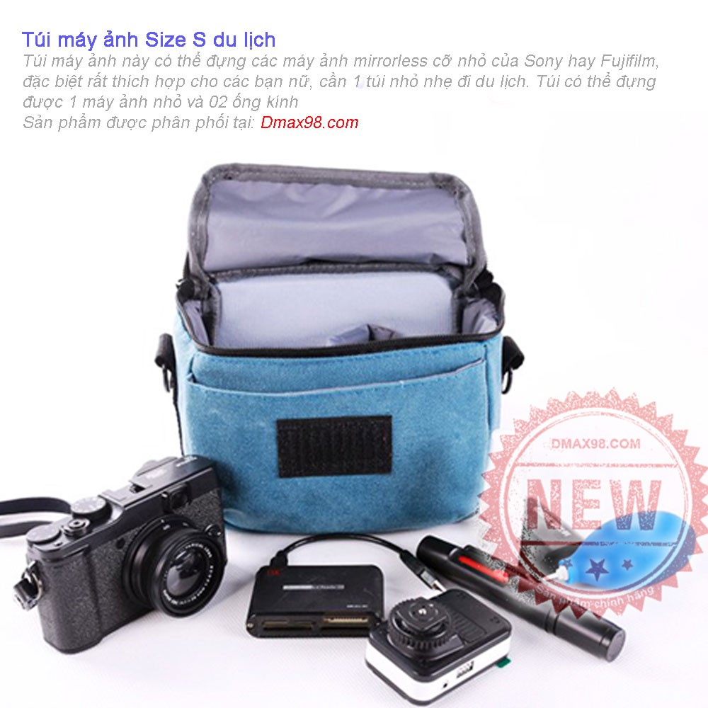 Túi máy ảnh mini này có thể đựng các máy ảnh nhỏ nhẹ ống kính rời có Nikon 1, Fujifilm, Sony, Canon rất dễ dàng kèm với 02 ống kính nhỏ. Hãy quên đi những chiếc túi cồng kềnh mà bạn mang theo người, những chiếc túi đó là dành cho các máy ảnh DSLRTúi có 02 ngăn riêng biệt, nếu các bạn chỉ sử dụng 1 ống kính duy nhất thì ngăn còn lại có thể chứa phụ kiện hoặc điện thoại hay các đồ trang điểm nhỏ nhẹ mà các bạn nữ thường mang theo. Túi máy ảnh này có mức giá rất hợp lý và đi kèm 02 màu khá đẹp